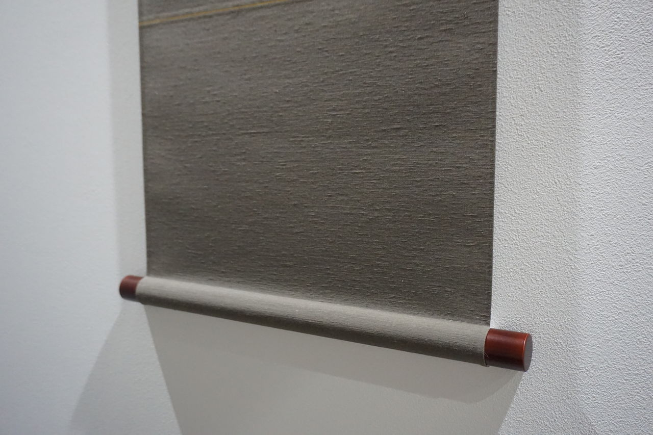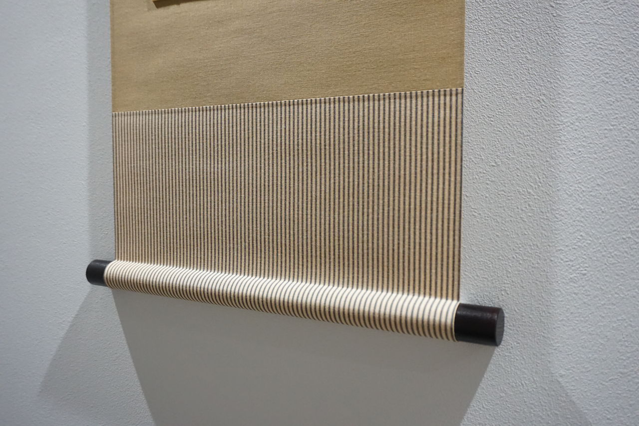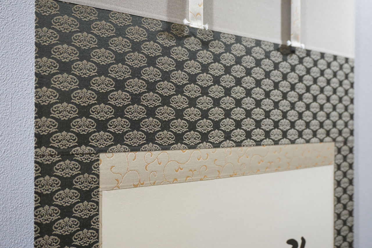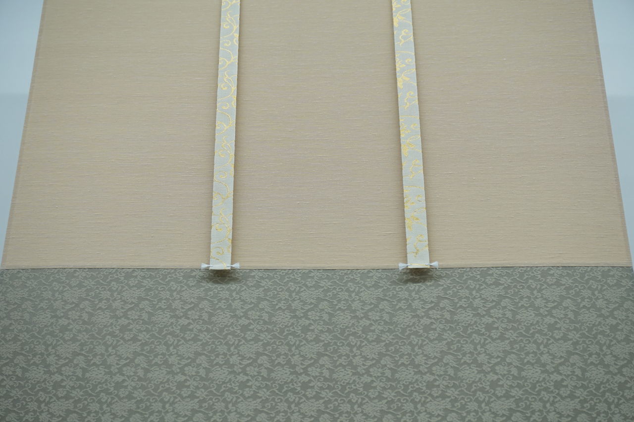 これは、掛軸表装の切り継ぎ工程中の一コマです。
