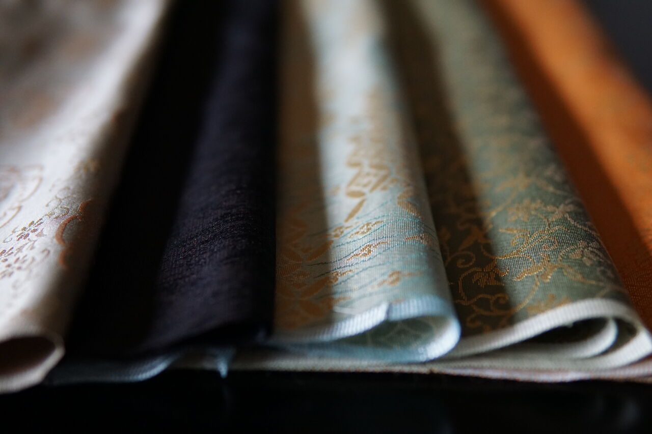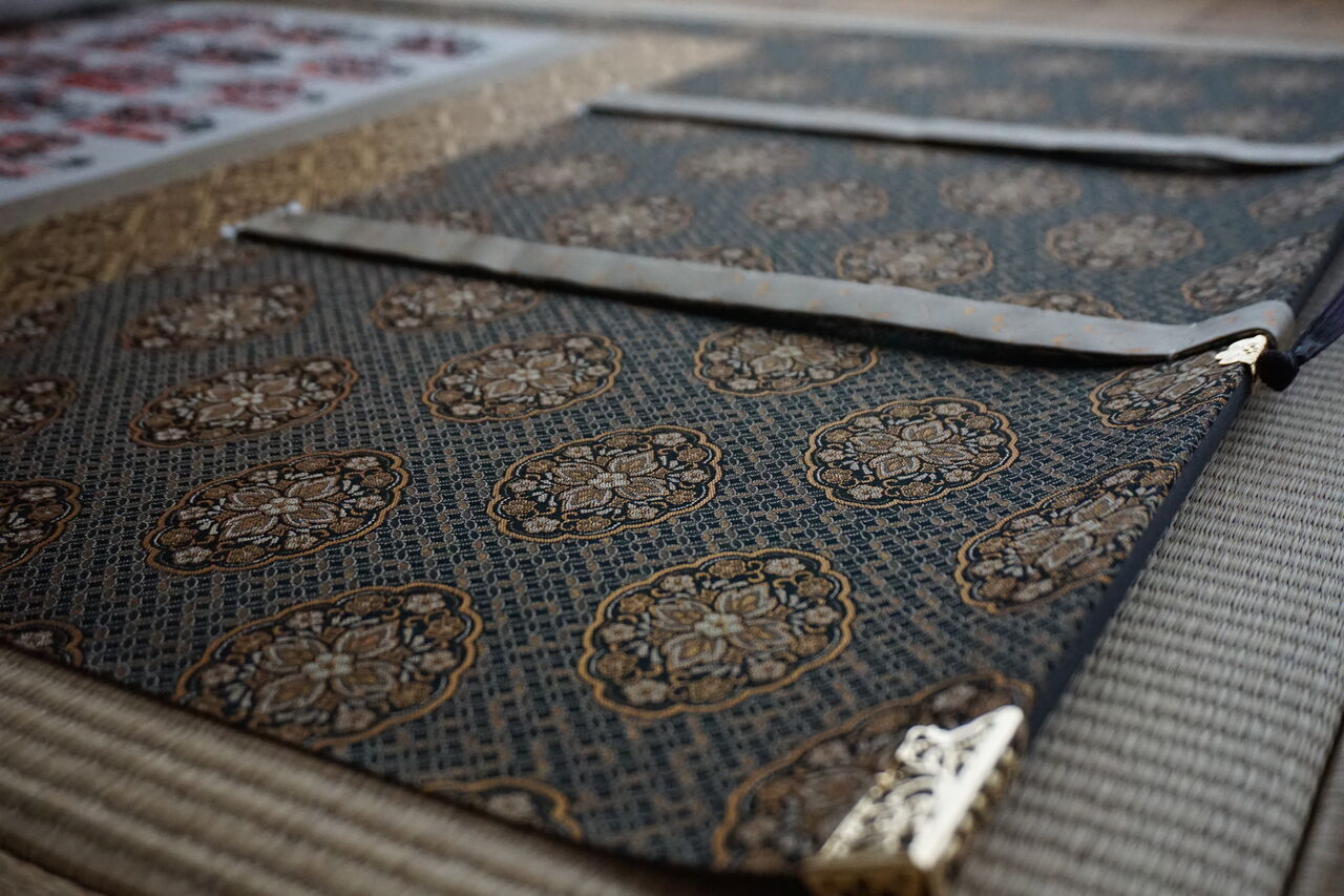 2020年11月02日 裂地の準備 掛軸や額装・屏風に使用する表装裂地の防縮加工の一コマです。裂地は全て異なる特徴があるので、一点一点確かめながら作業していきます。 また、ただ作業するのではなく仕上がった際の裂地の表情をイメージすることで、より質の高い仕事になる様な気がします。