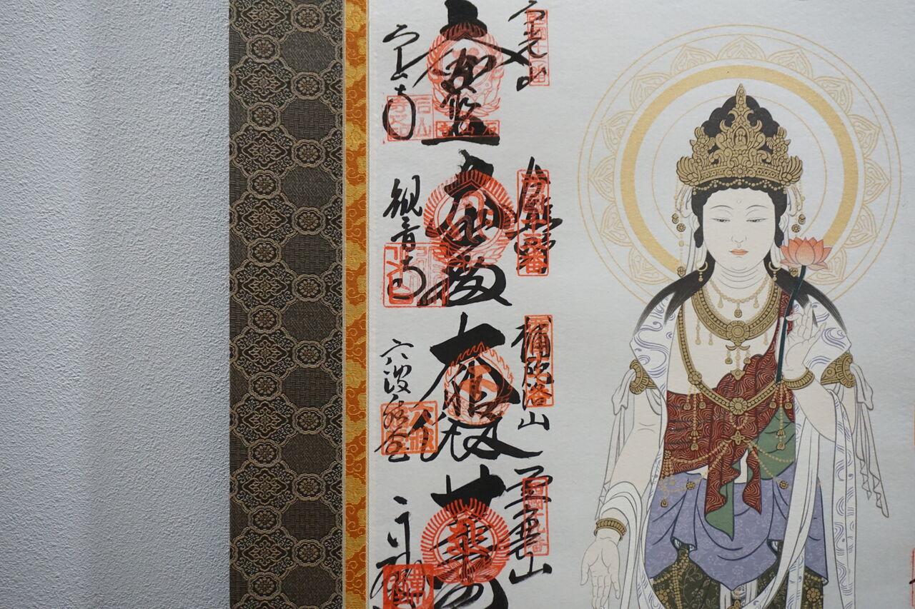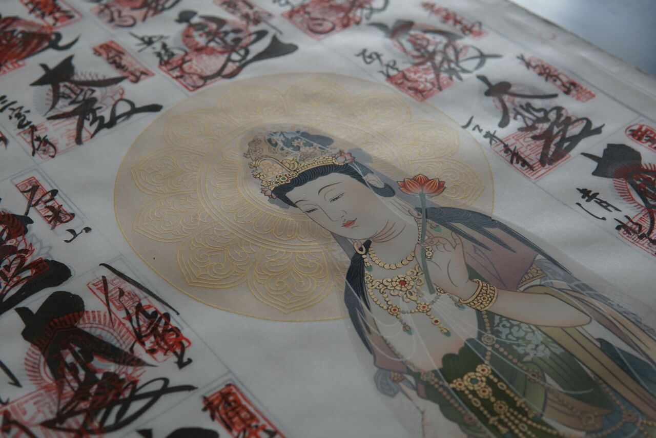 2020年11月22日 いい夫婦 この観音様と出会った時から、「松月堂さんへお願いする」と決めていたそうです。11月22日にめでたく満願し、その足で和歌山県から表装のご依頼にご夫婦でお越しいただきました。表装裂地の取り合わせもすんなり意見が一致する息の合ったご夫婦で、まさに『いい夫婦の日』でした。僕の長い講釈にも耳を傾けてくださり、ありがとうございました。