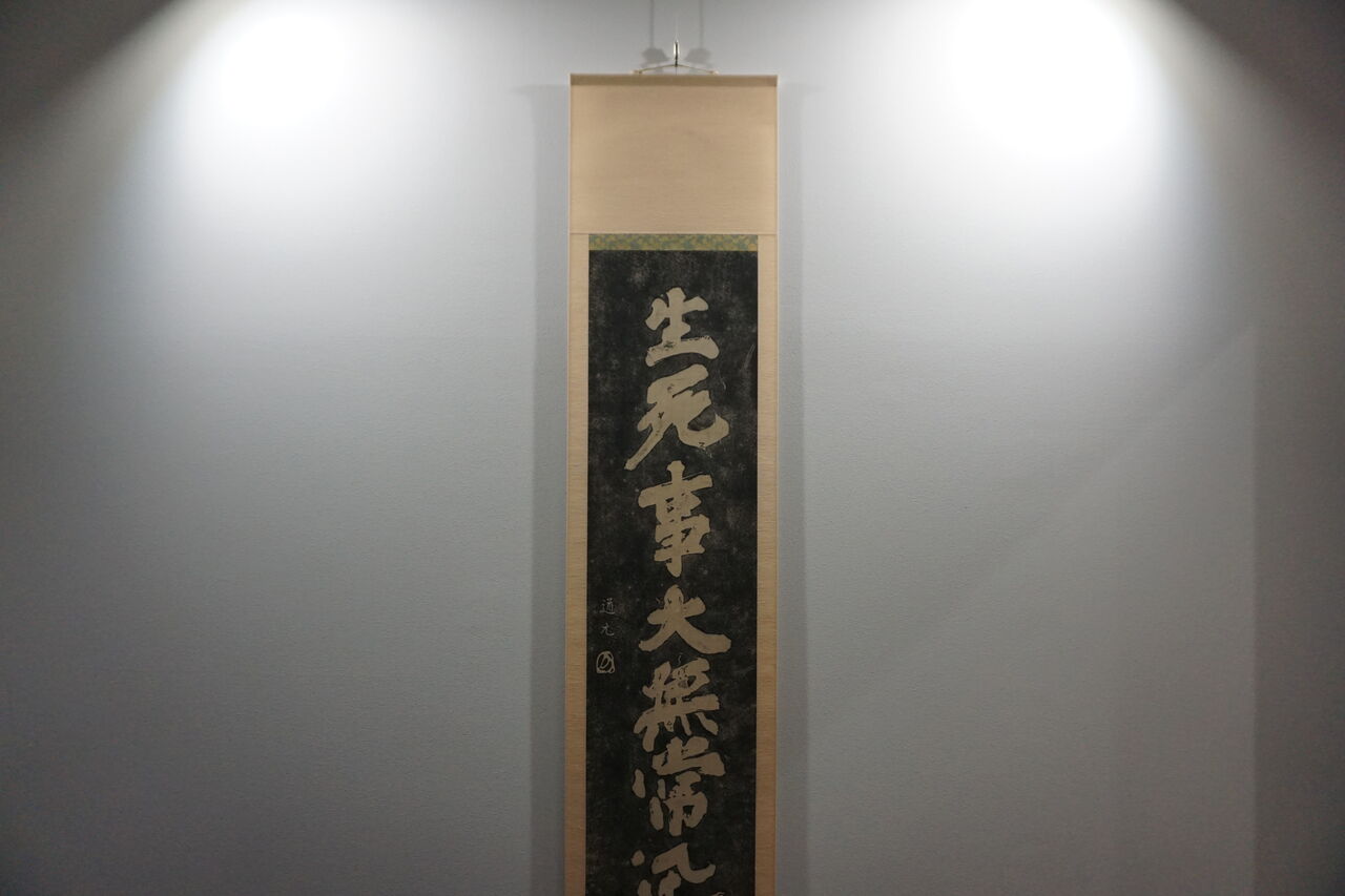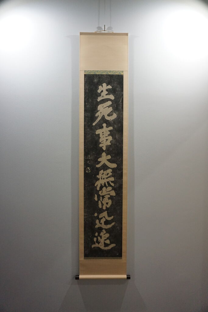 2020年11月12日 WORKS Vol.160(道元 ※曹洞宗の開祖) 《生死事大無常迅速》読み:しょうじじだい むじょうじんそく道元 (曹洞宗の開祖)の拓本です。人の世の移り変りは常にはかなく変転してやまない。時は移りゆき、形あるものは必ず滅する。一切が無常であり生滅するそのことわりを凝視して、ぼやぼやしていたらすぐに死ぬのだから、無駄に過ごしてはならない。昔の己に言ってやりたい。作家/道元 ※曹洞宗の開祖 作品/生死事大無常迅速(拓本)ご依頼主/岐阜県