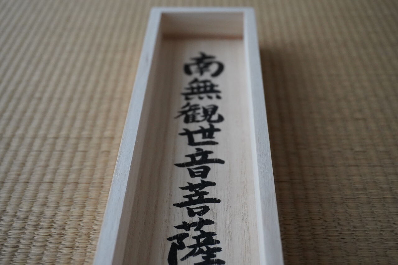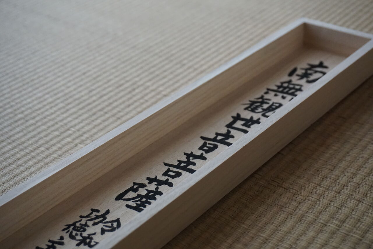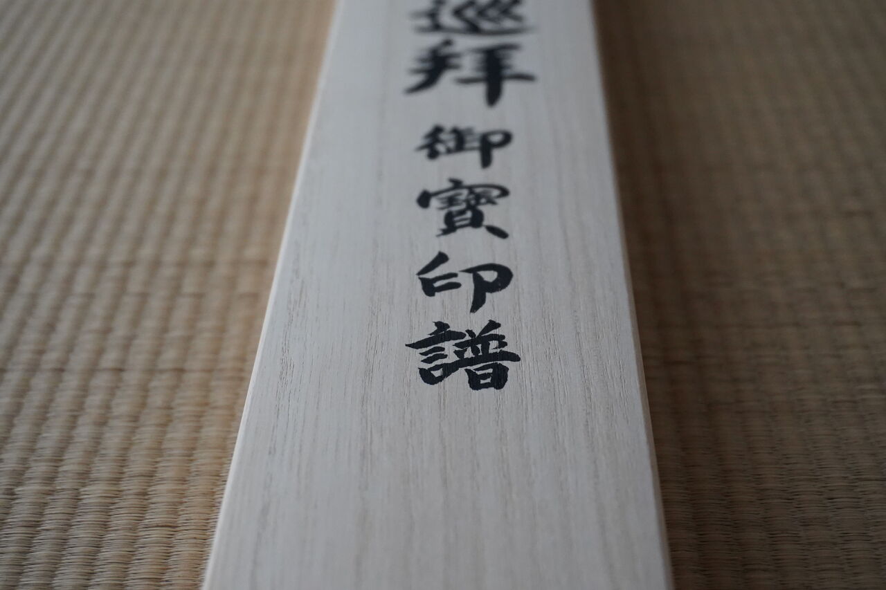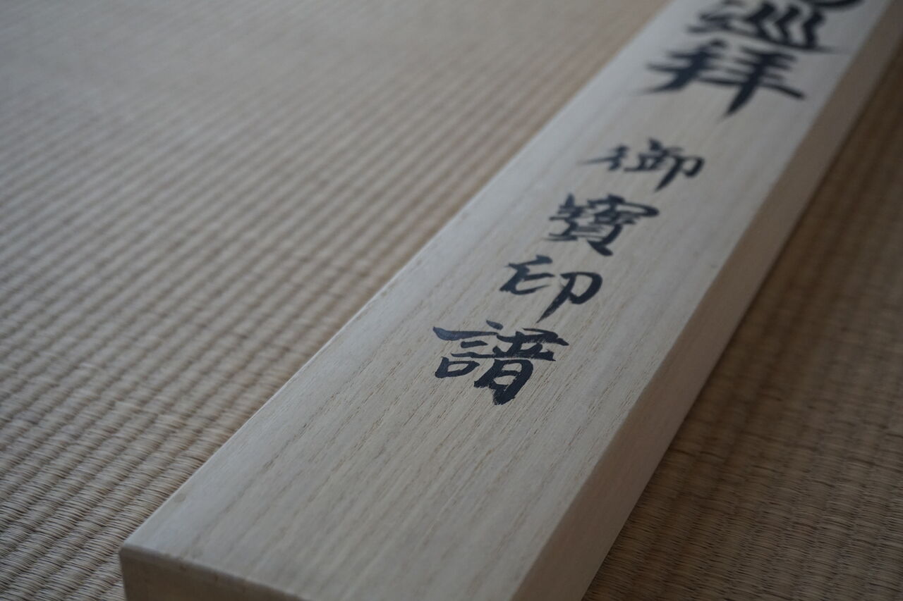 2018年11月15日 WORKS Vol.76(西国薬師四十九霊場) 人は、なぜ巡礼をするのか、、その答えは、実に深い、、、みんな色々な思いを持って巡礼していることをこの仕事をしていると強く感じます。だから、巡礼の掛軸には自然に個性が出ます。そして、その個性を大切にしてあげたいといつも考えています。▲表装前す▲表装後▲真の真(最高格式の仏表装)※一文字廻しを施しています八双:本金鍍金・高級透かし金具軸先:本金鍍金・高級透かし金具高野山奥の院・箱書き加州塗り・高級二重【上】桐箱西国薬師四十九霊場/掛軸表装/特上ご依頼主/三重県