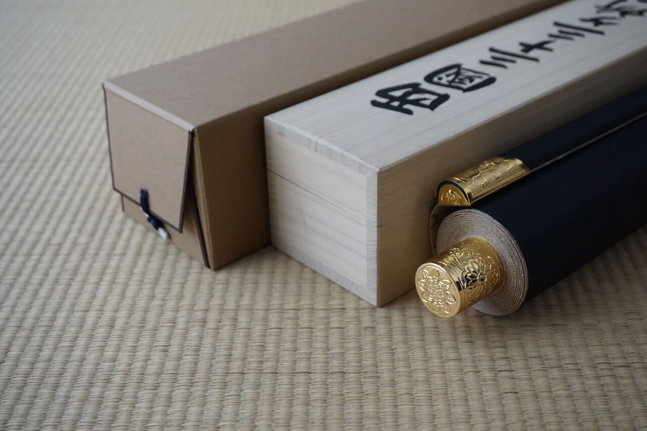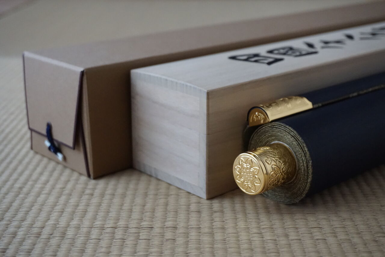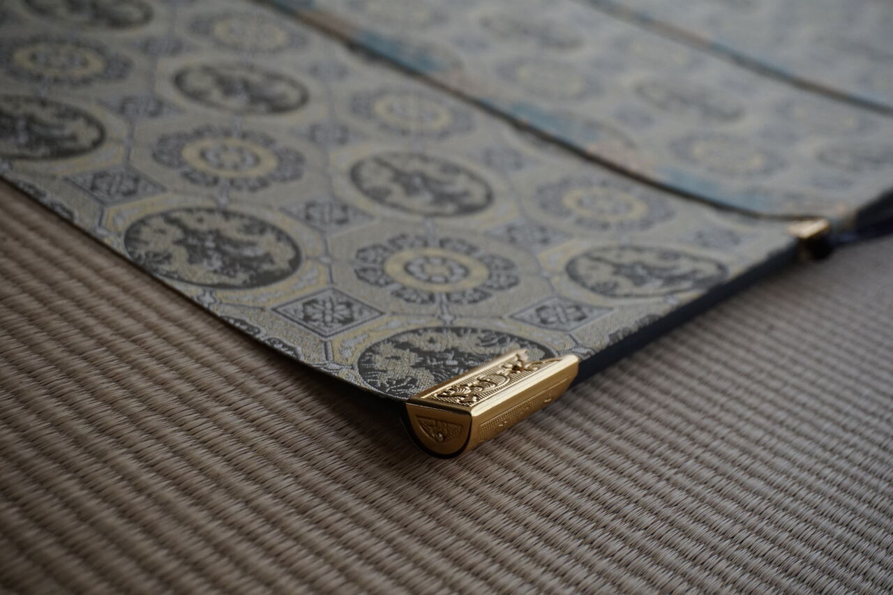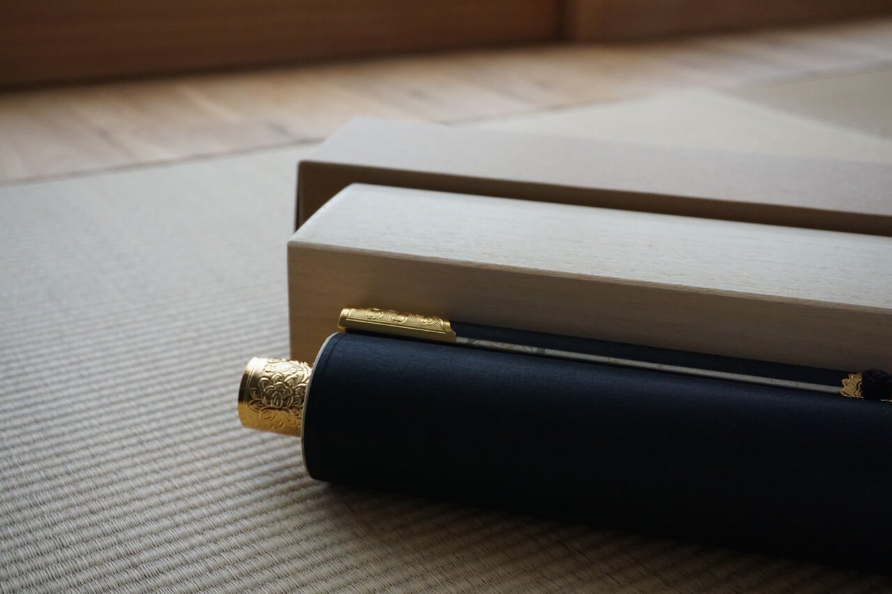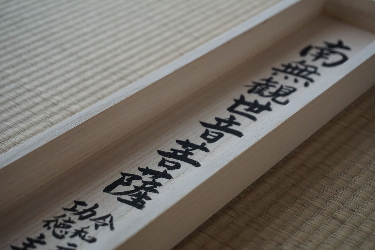 2018年11月15日 WORKS Vol.76(西国薬師四十九霊場) 人は、なぜ巡礼をするのか、、その答えは、実に深い、、、みんな色々な思いを持って巡礼していることをこの仕事をしていると強く感じます。だから、巡礼の掛軸には自然に個性が出ます。そして、その個性を大切にしてあげたいといつも考えています。▲表装前す▲表装後▲真の真(最高格式の仏表装)※一文字廻しを施しています八双:本金鍍金・高級透かし金具軸先:本金鍍金・高級透かし金具高野山奥の院・箱書き加州塗り・高級二重【上】桐箱西国薬師四十九霊場/掛軸表装/特上ご依頼主/三重県