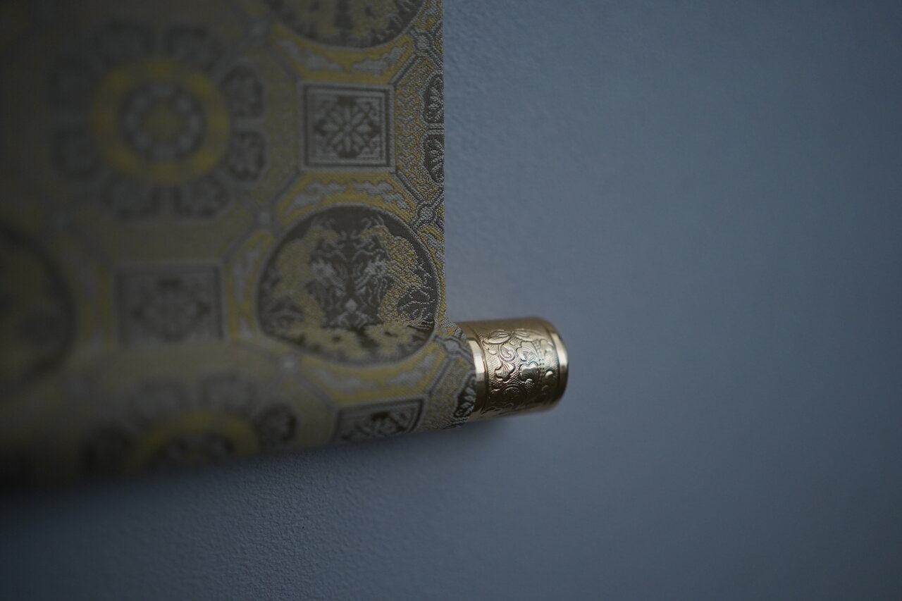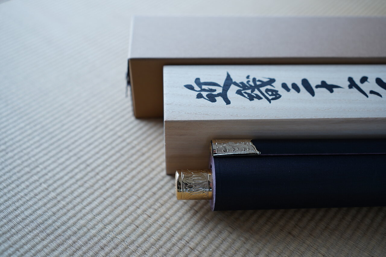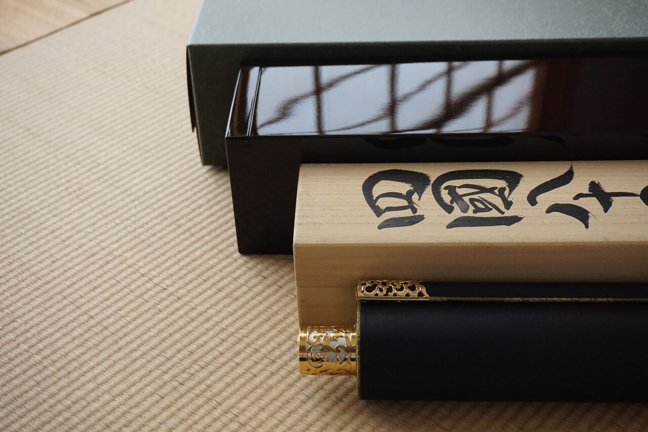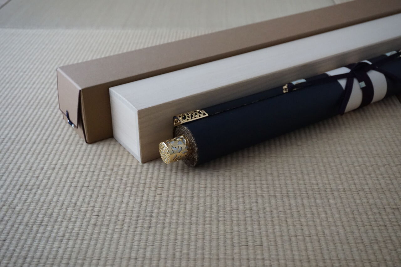2018年11月15日 WORKS Vol.76(西国薬師四十九霊場) 人は、なぜ巡礼をするのか、、その答えは、実に深い、、、みんな色々な思いを持って巡礼していることをこの仕事をしていると強く感じます。だから、巡礼の掛軸には自然に個性が出ます。そして、その個性を大切にしてあげたいといつも考えています。▲表装前す▲表装後▲真の真(最高格式の仏表装)※一文字廻しを施しています八双:本金鍍金・高級透かし金具軸先:本金鍍金・高級透かし金具高野山奥の院・箱書き加州塗り・高級二重【上】桐箱西国薬師四十九霊場/掛軸表装/特上ご依頼主/三重県