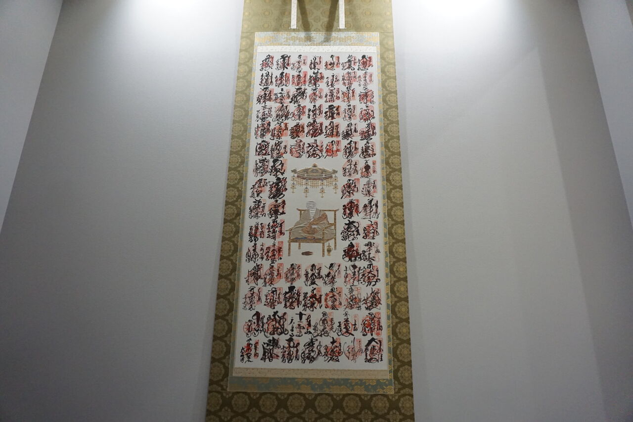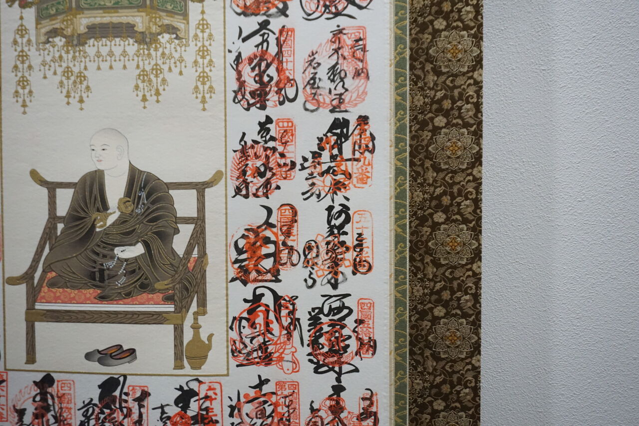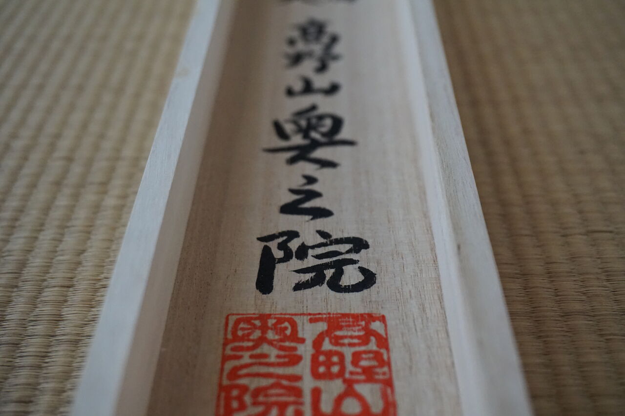 2020年06月17日 WORKS Vol.140(四国八十八ヶ所霊場) 風帯の裏も外廻しと同じ裂地を贅沢に使用しています高野山奥の院・箱書き加州塗り・高級二重箱※中身は【上】桐箱四国八十八ヶ所霊場/掛軸表装/特上仕上げご依頼主/秋田県