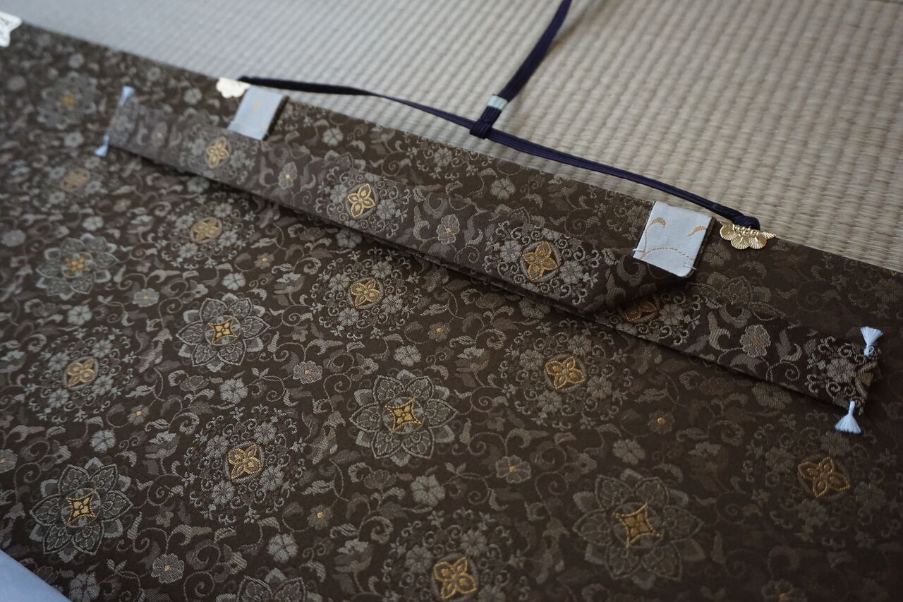 2019年03月20日 WORKS Vol.85(西国三十三ヶ所霊場) 松月堂の表装(裂地の取り合わせ)は、『全てお任せ』『半分お任せ』『全てご指定』で承っております。その中でも『半分お任せ』が一番人気です。今回の表装は、『半分お任せ』でしたので、ご依頼主の雰囲気や好みと納経軸の個性を自分なりに解釈しながら、表装裂地の取り合わせをさせていただきました。ご依頼主には大変気に入っていただけましたので、ホッとしております。お引き渡しの瞬間は、いつもドキドキで慣れることはないですね。西国三十三ヶ所霊場・掛軸表装ご依頼主:愛知県