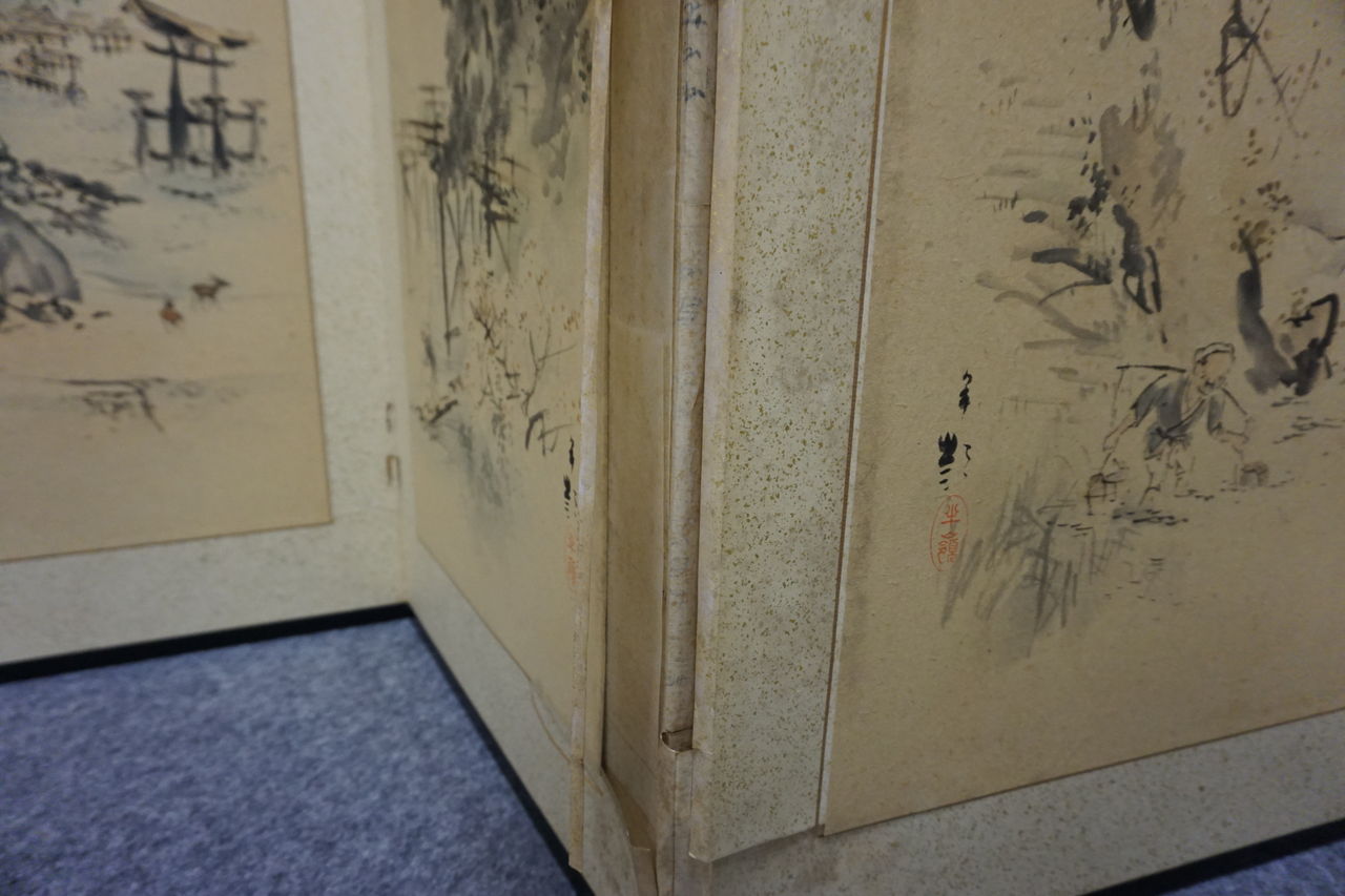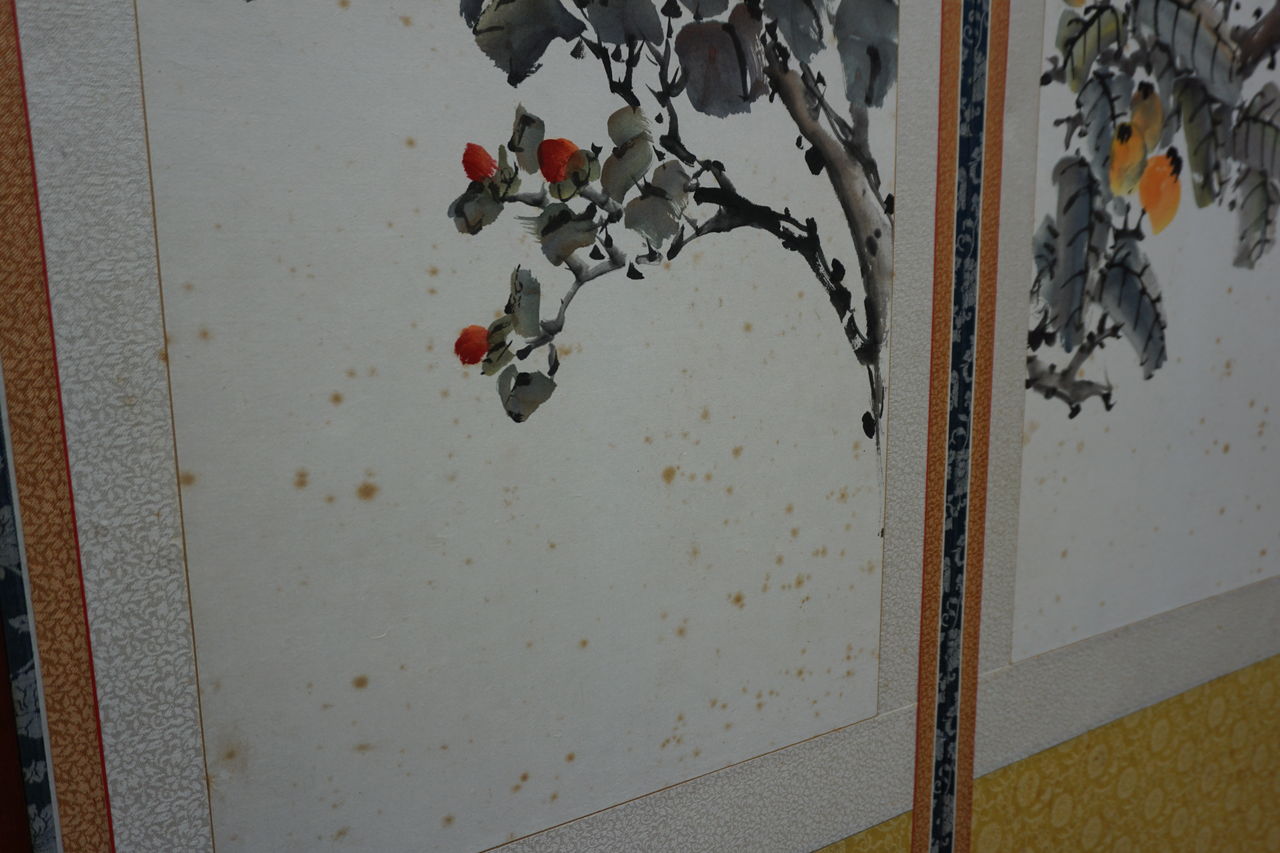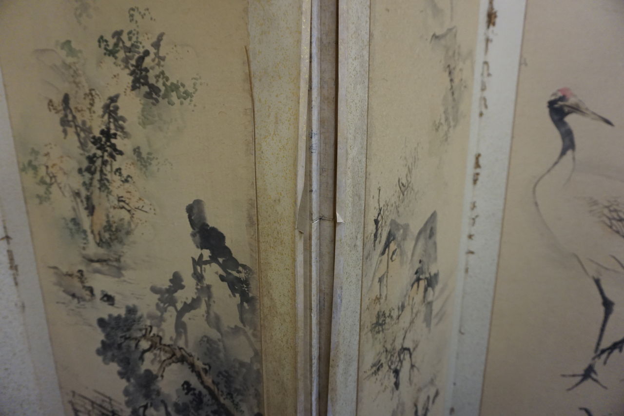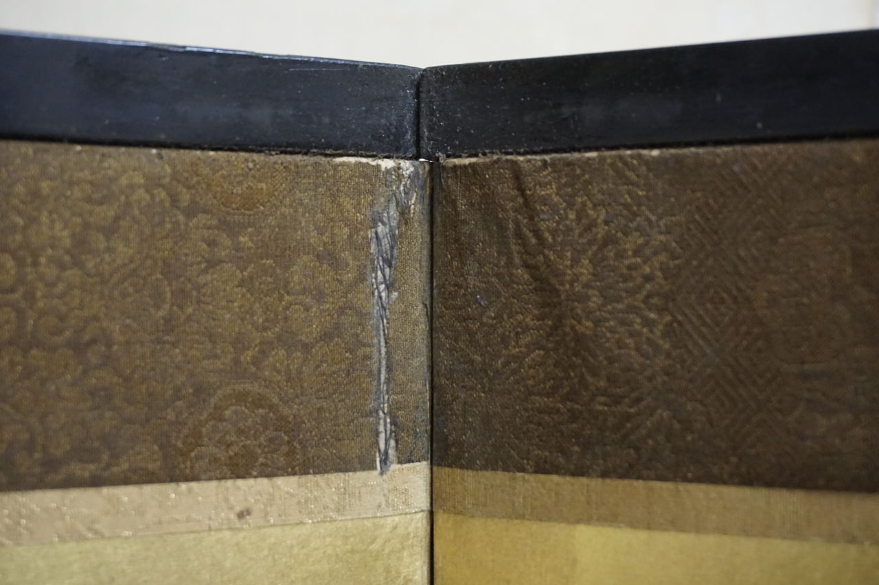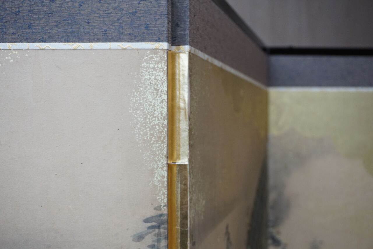 所有者はA様ですが、ご依頼の屏風の経緯をご存知なのはB様で、戦時中を逃れた貴重な屏風であったそうで、とても興味深いお話を伺うことができました。