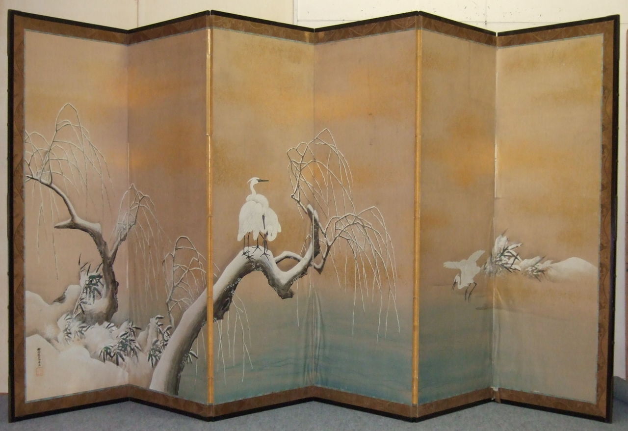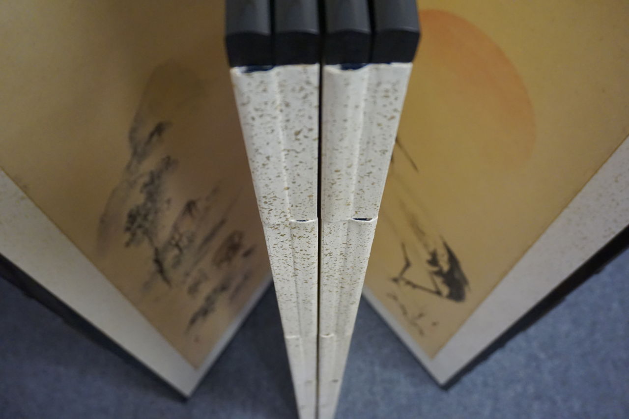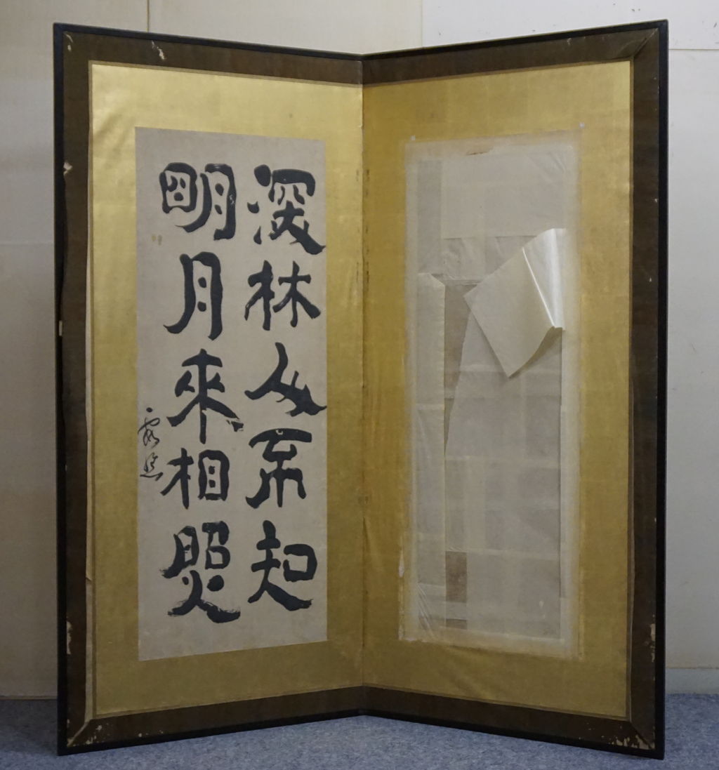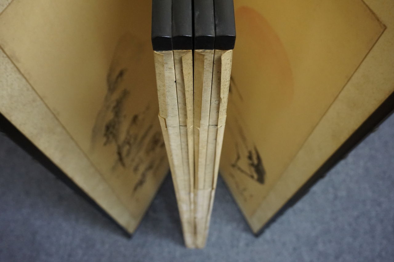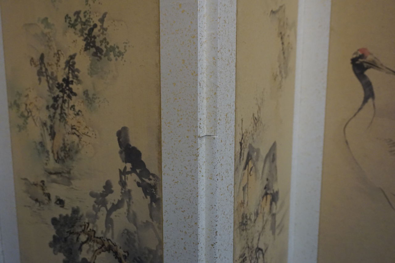 所有者はA様ですが、ご依頼の屏風の経緯をご存知なのはB様で、戦時中を逃れた貴重な屏風であったそうで、とても興味深いお話を伺うことができました。