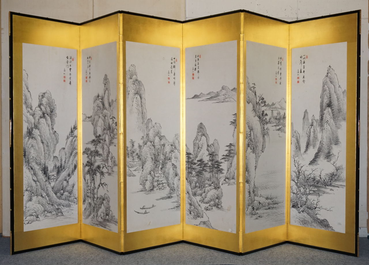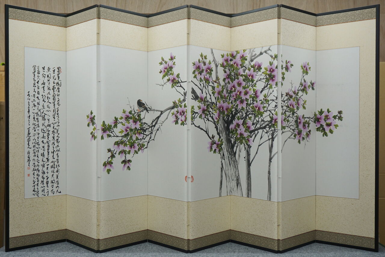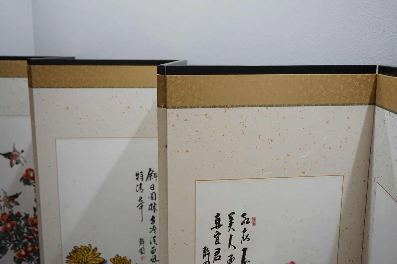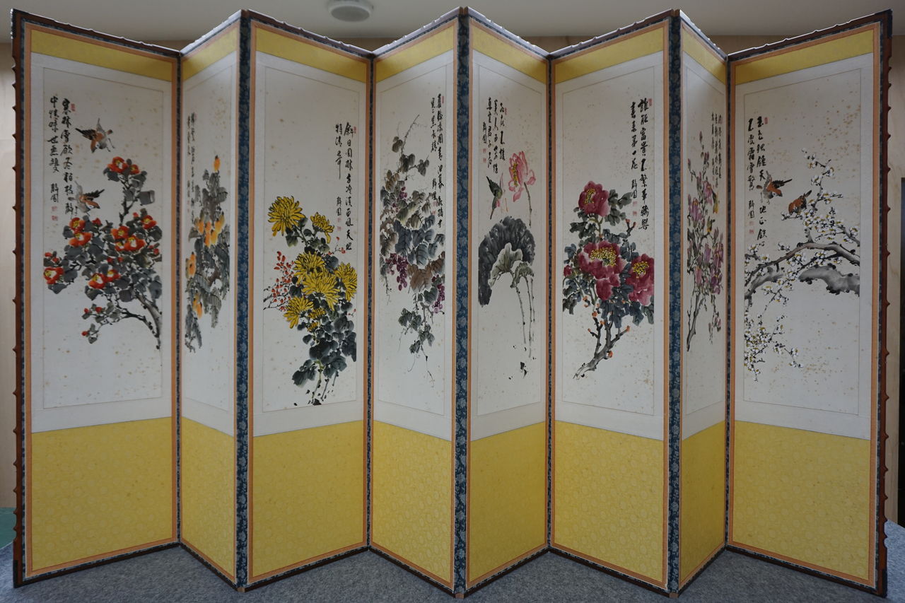 韓国で仕立てられた屏風と8枚の絵。