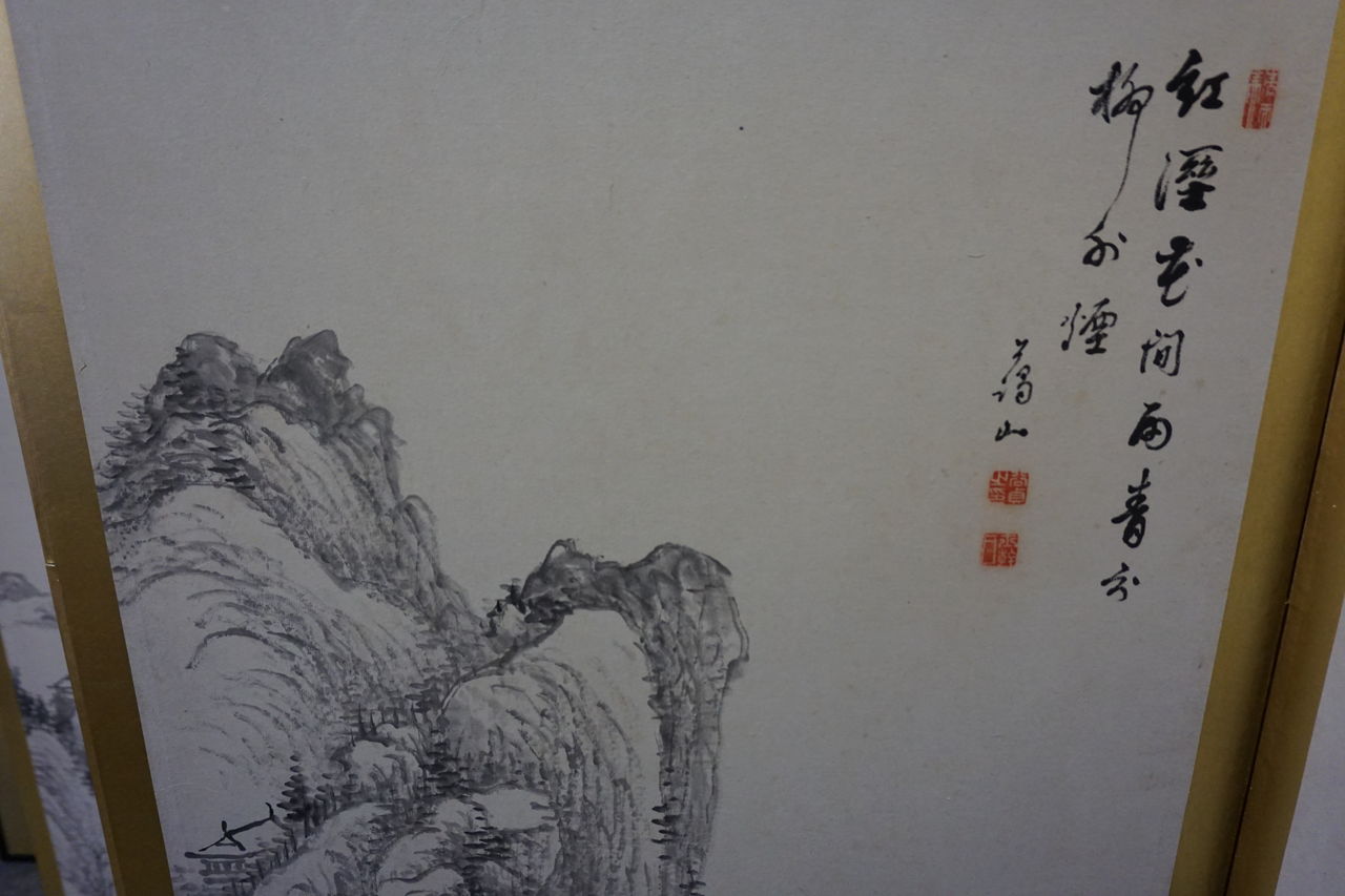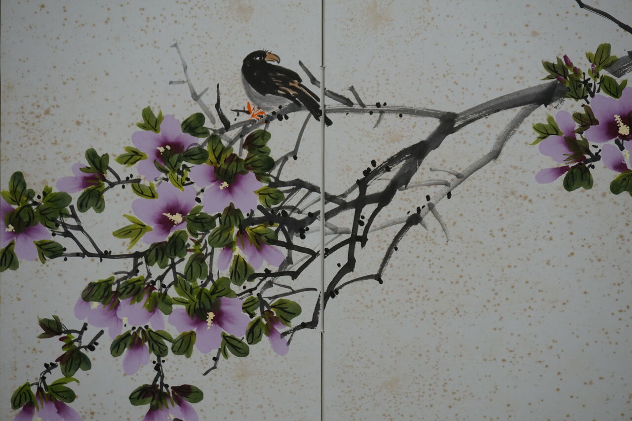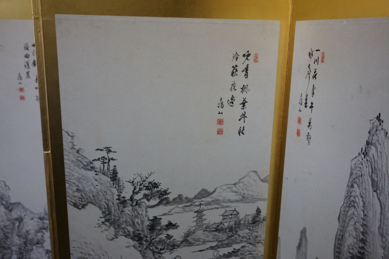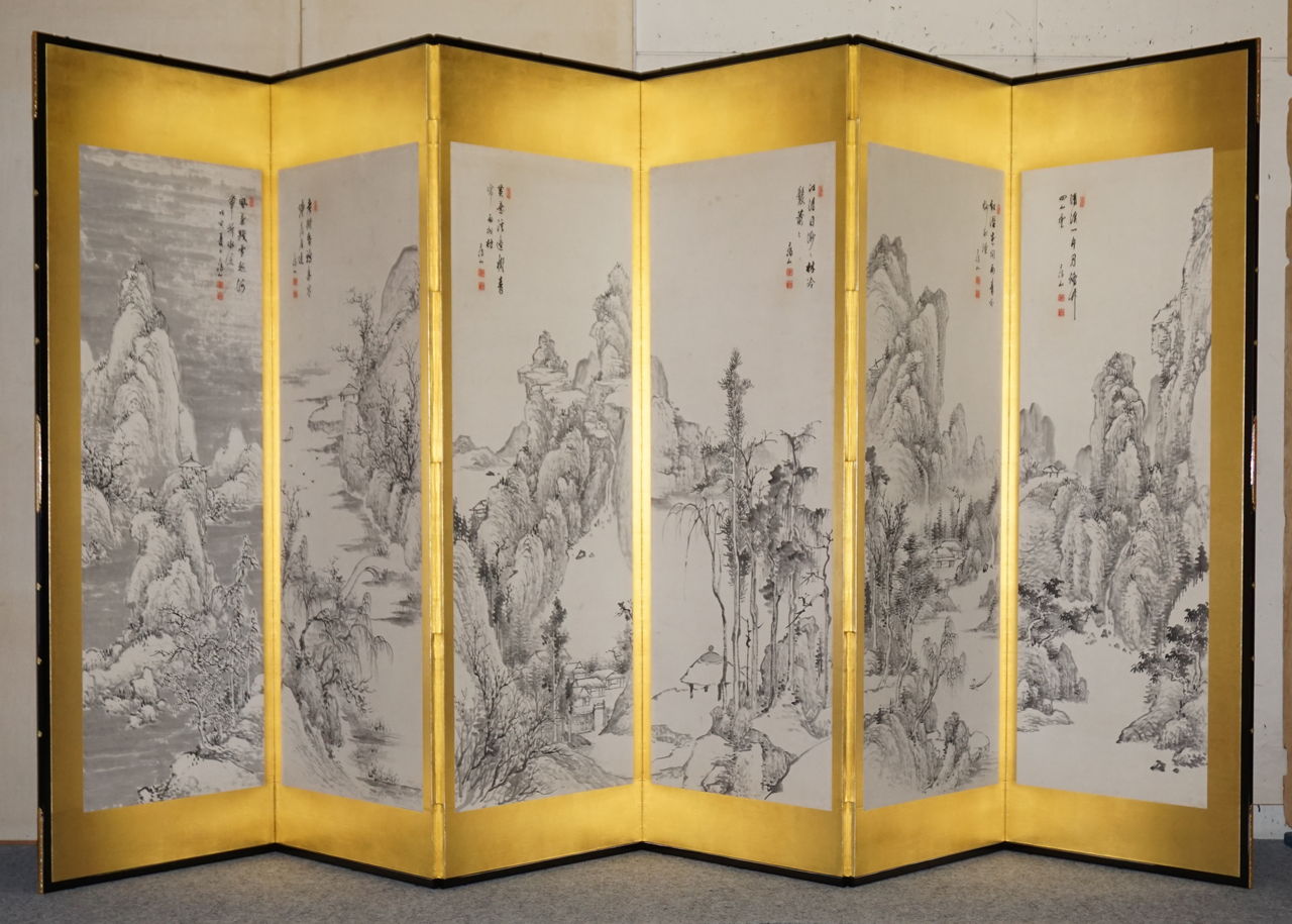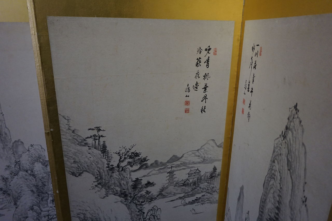 韓国で仕立てられた屏風と8枚の絵。
