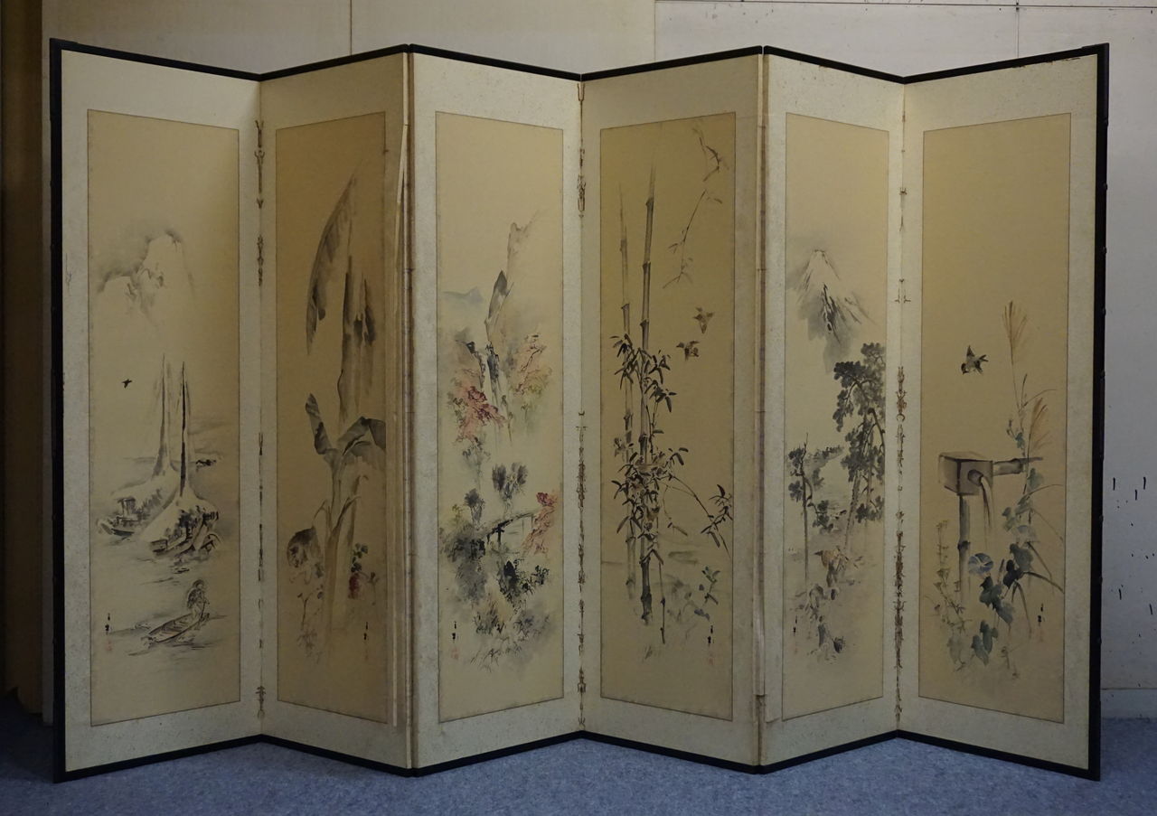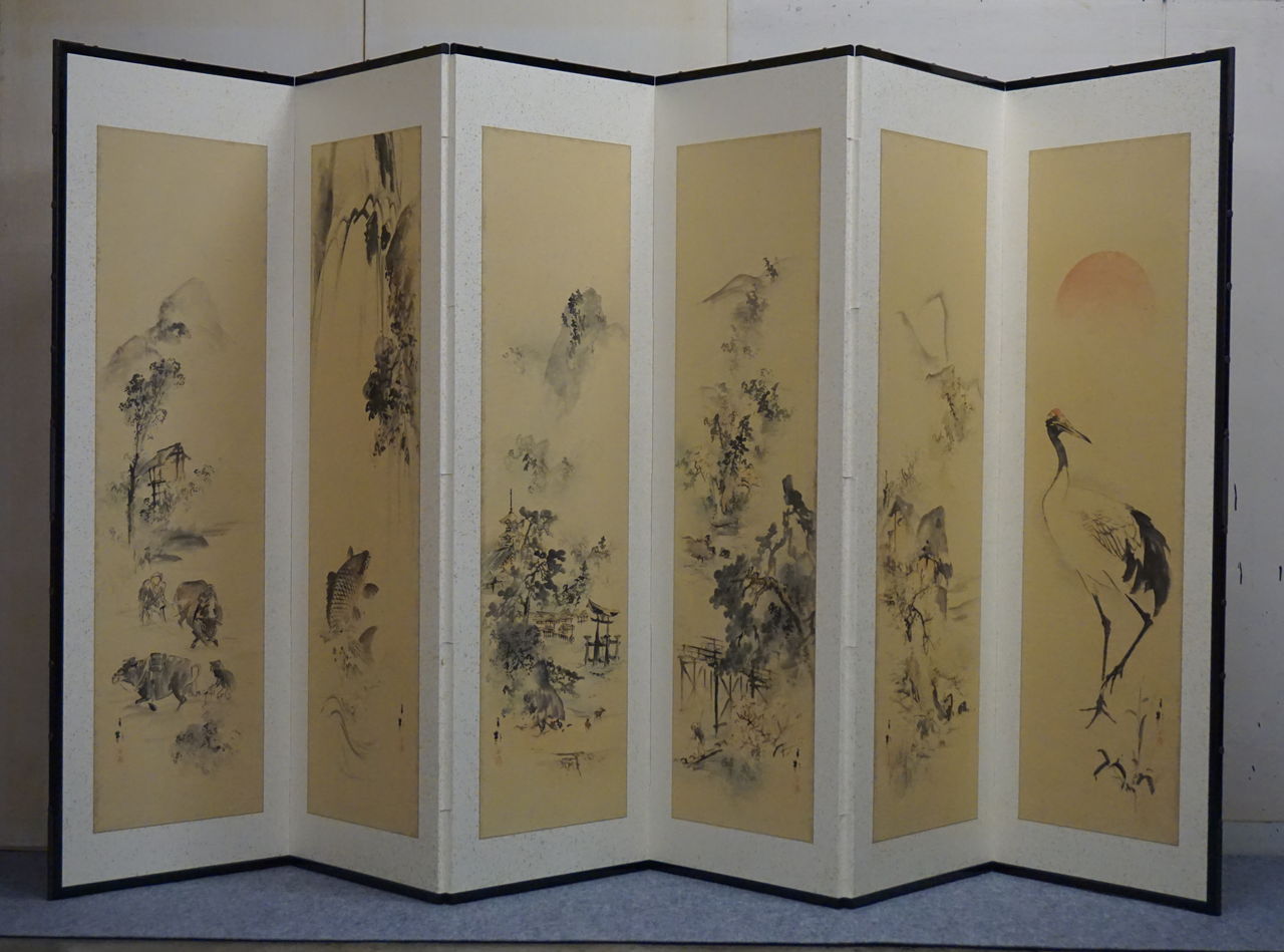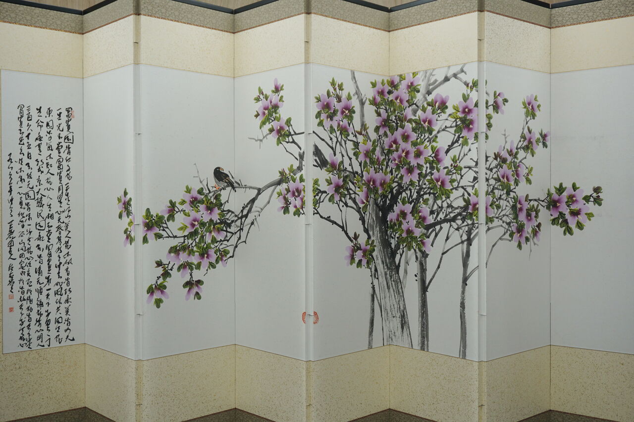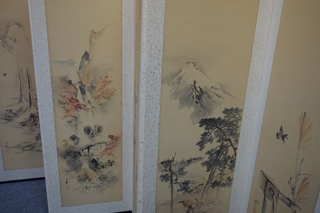 韓国で仕立てられた屏風と8枚の絵。