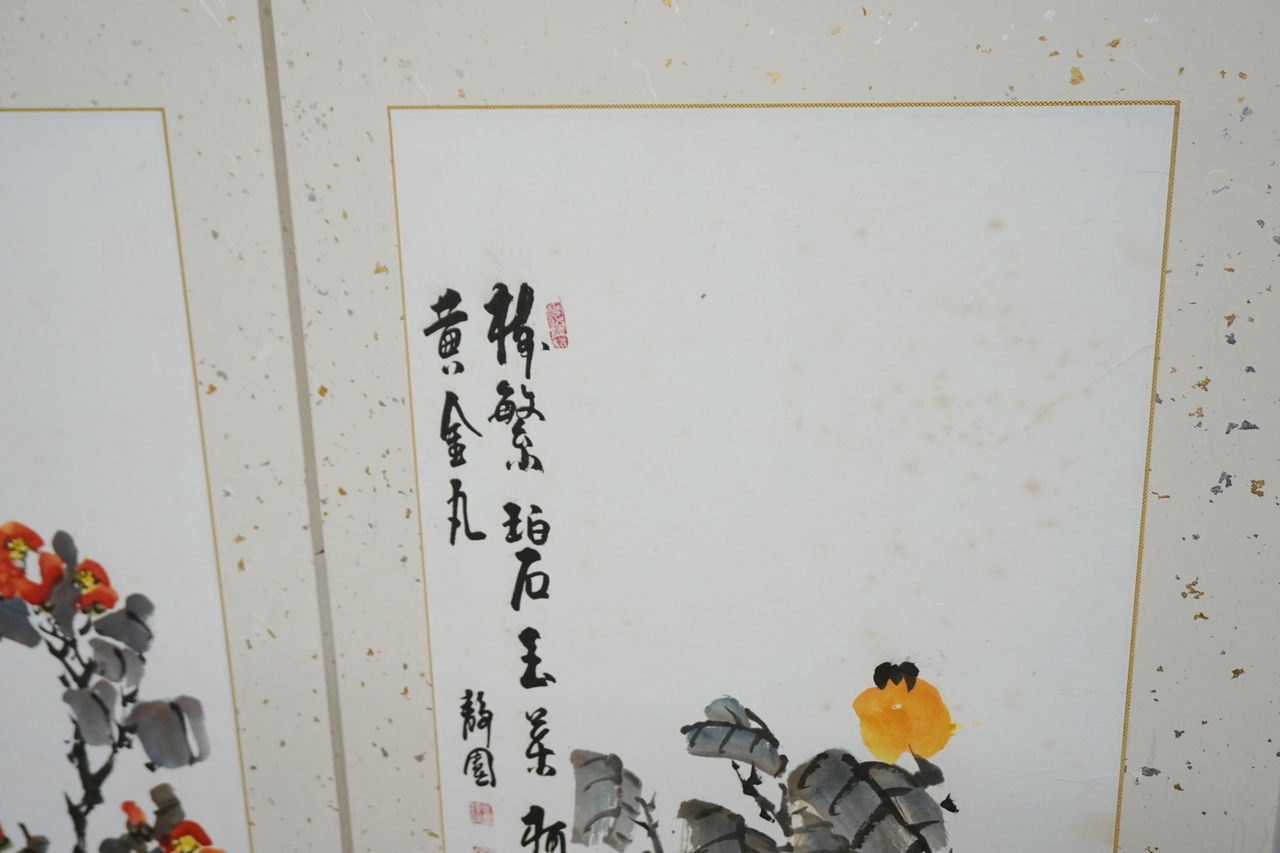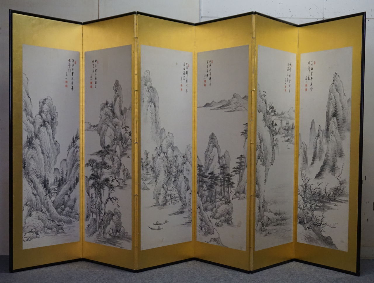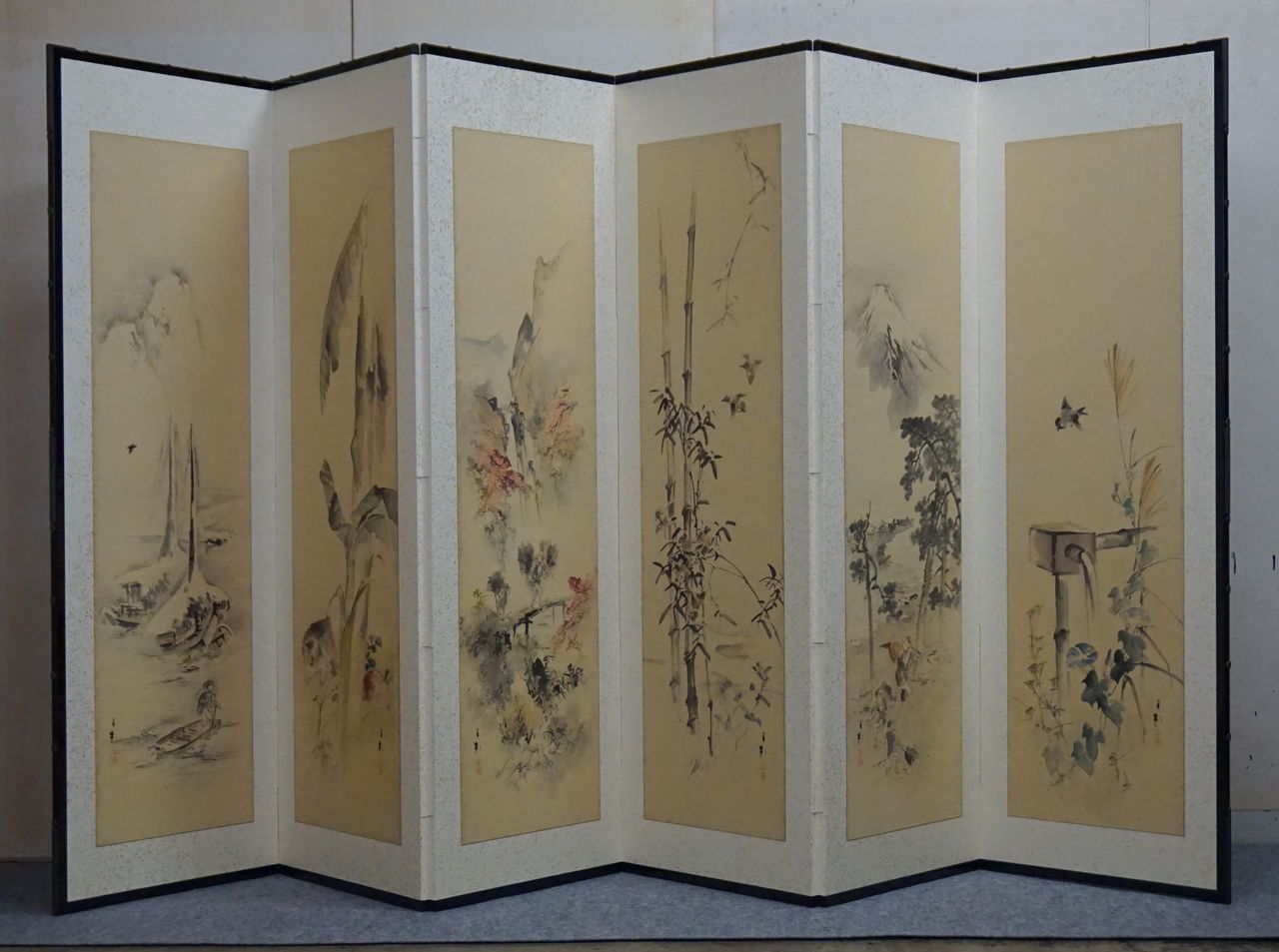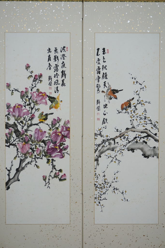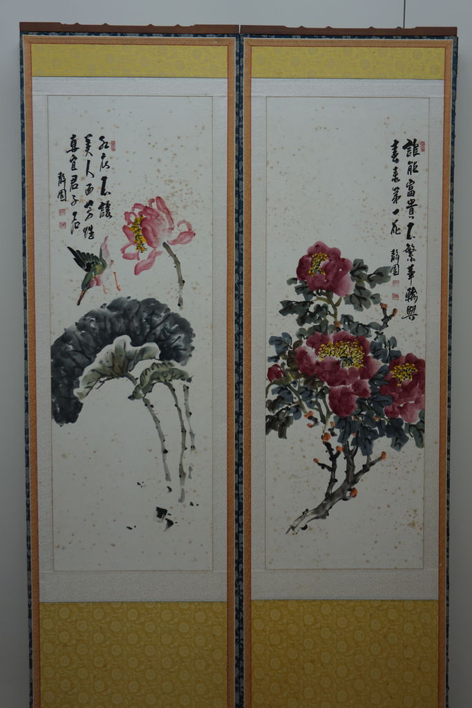 韓国で仕立てられた屏風と8枚の絵。