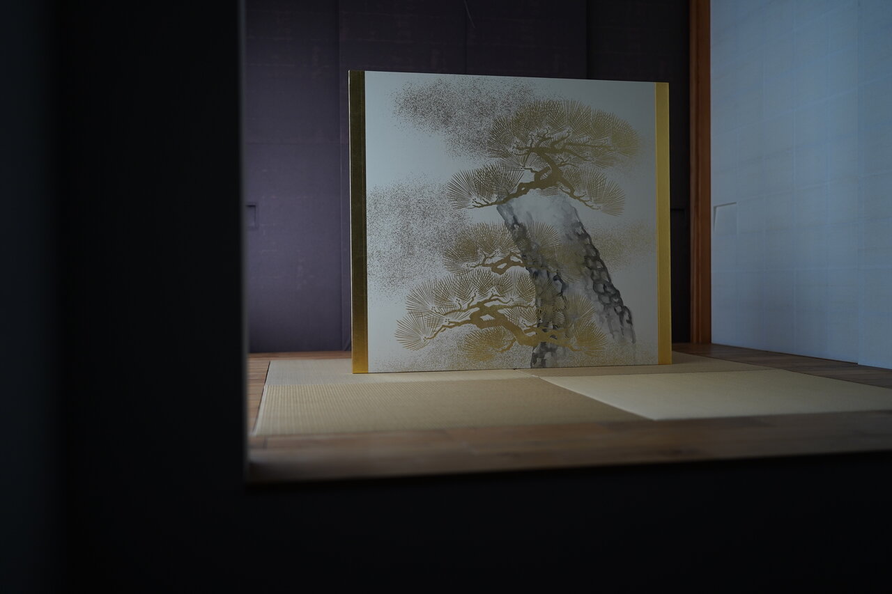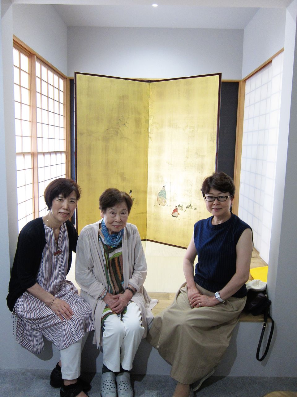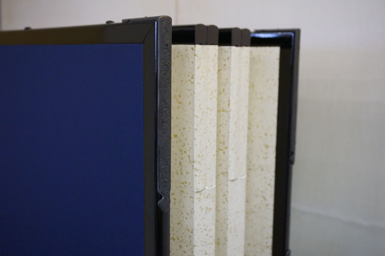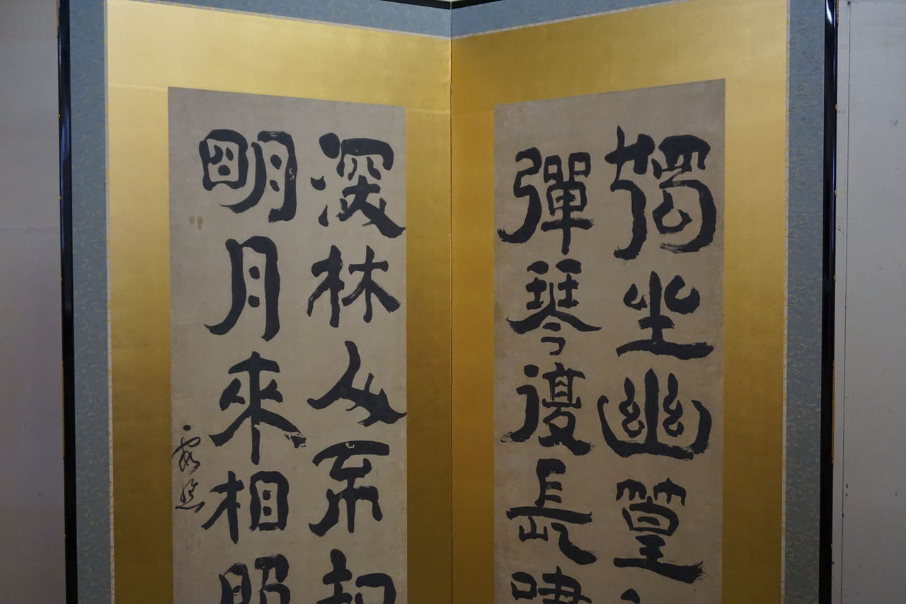 先日、修繕を終えた本金屏風(井芹蘇泉:作)をご覧になるため、ご依頼主(東京都:A様)とご親戚(滋賀県:B様2名)のお三人で松月堂へお越しいただきました。