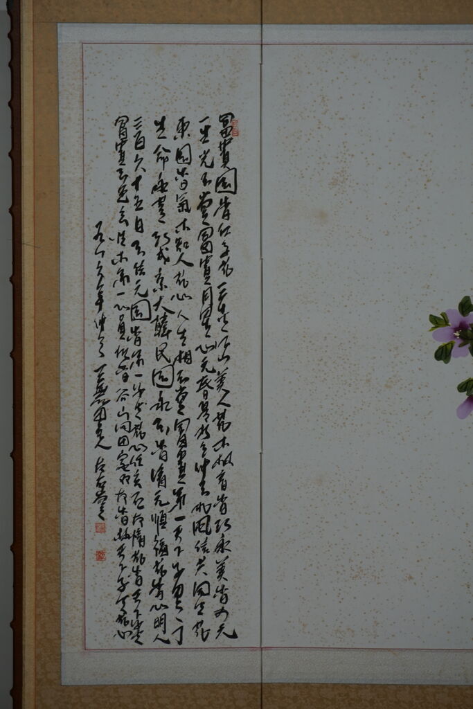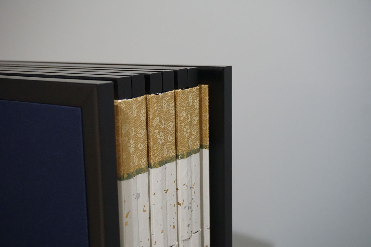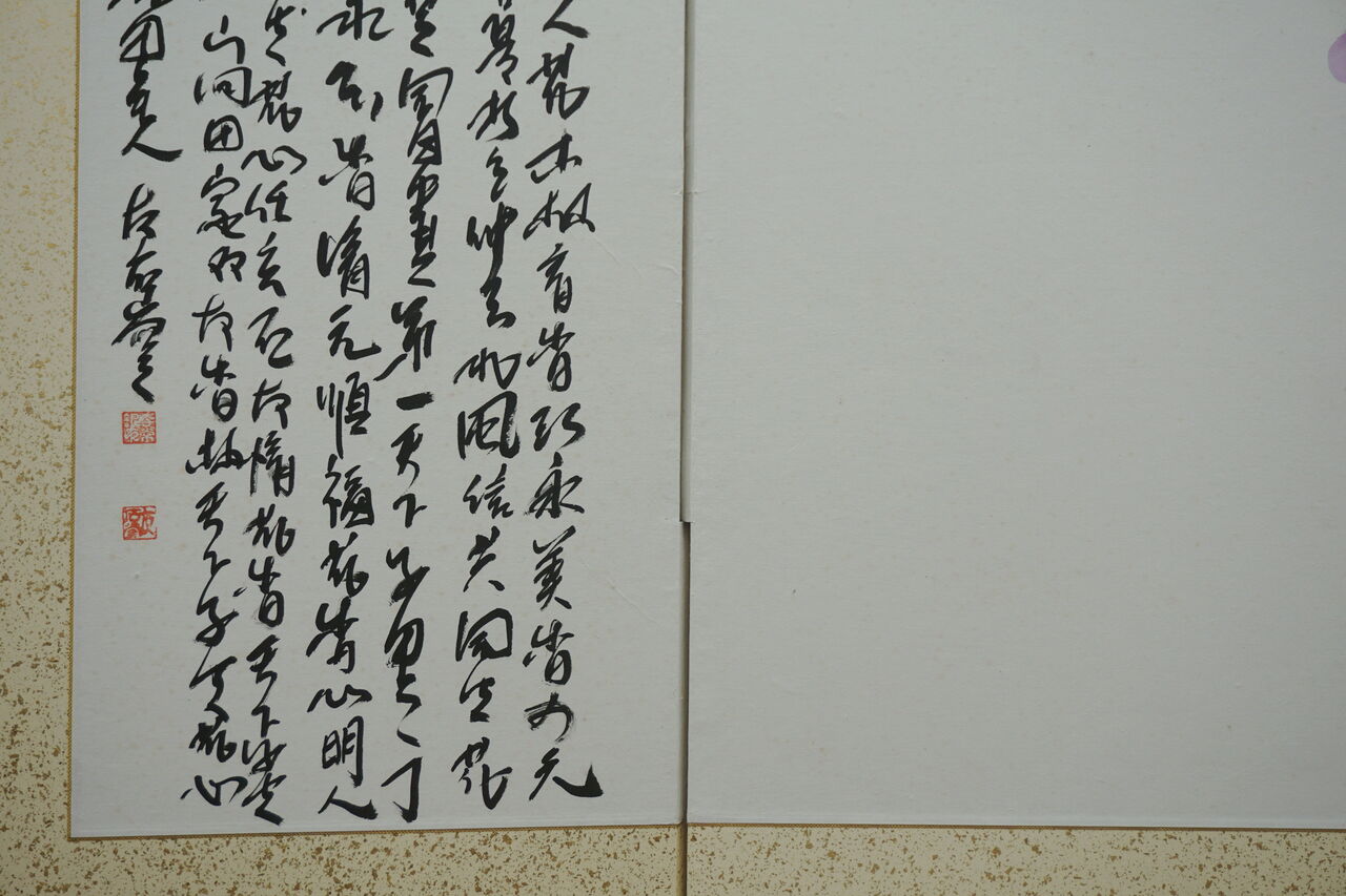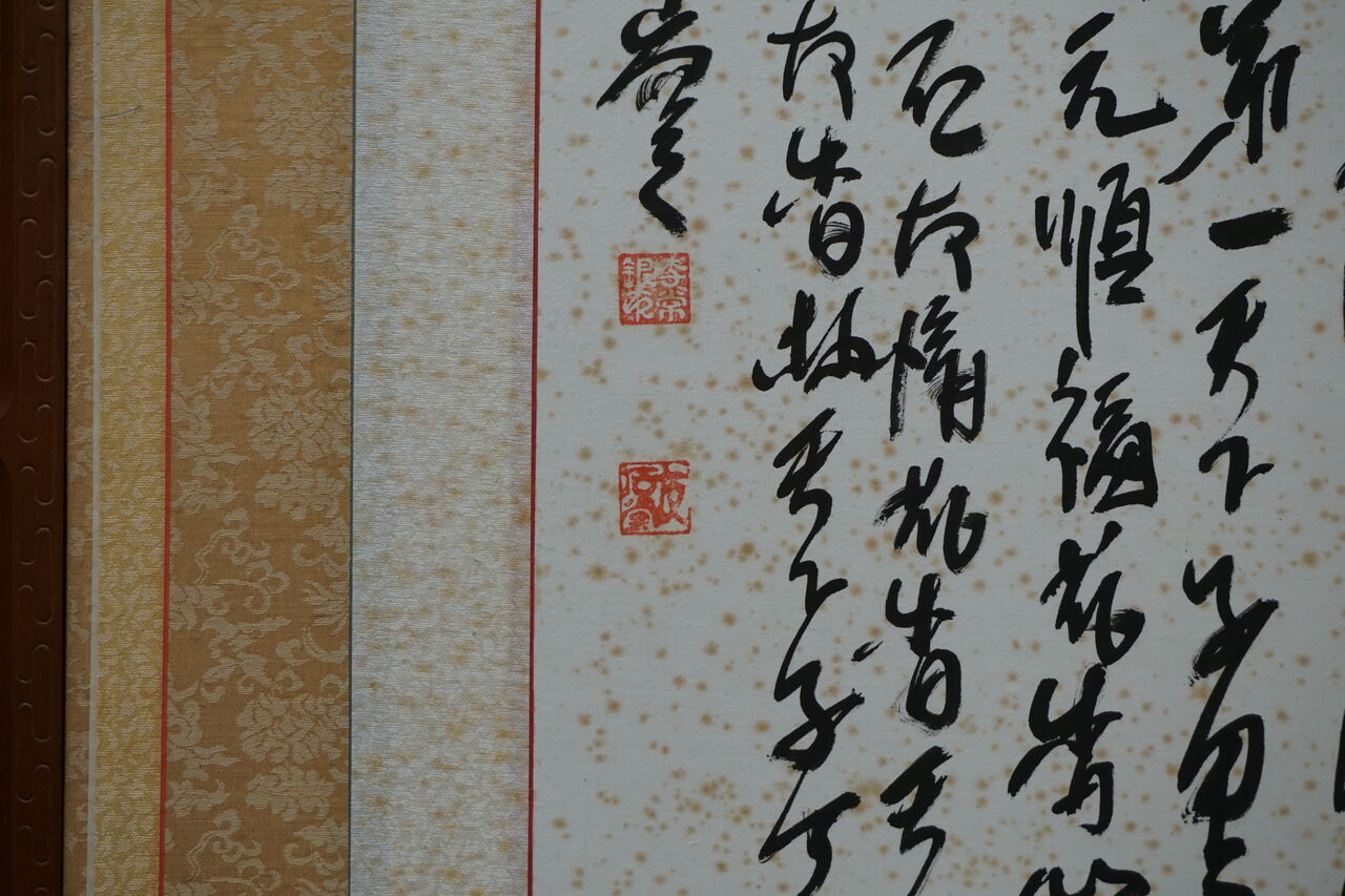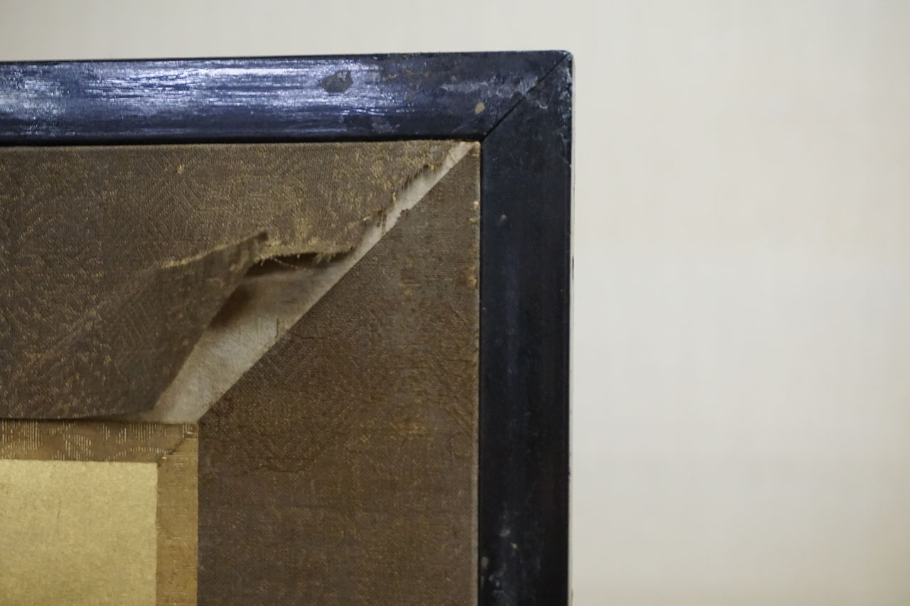ちょっと難しくなってしまいましたが、分かり易く言うと、一番表にくる本紙(絵画)以外を全て取り換えており、修繕前の本紙の環境と、修繕後の本紙の環境の差は、プレハブ小屋と数寄屋建築くらいの格差があるといことです。