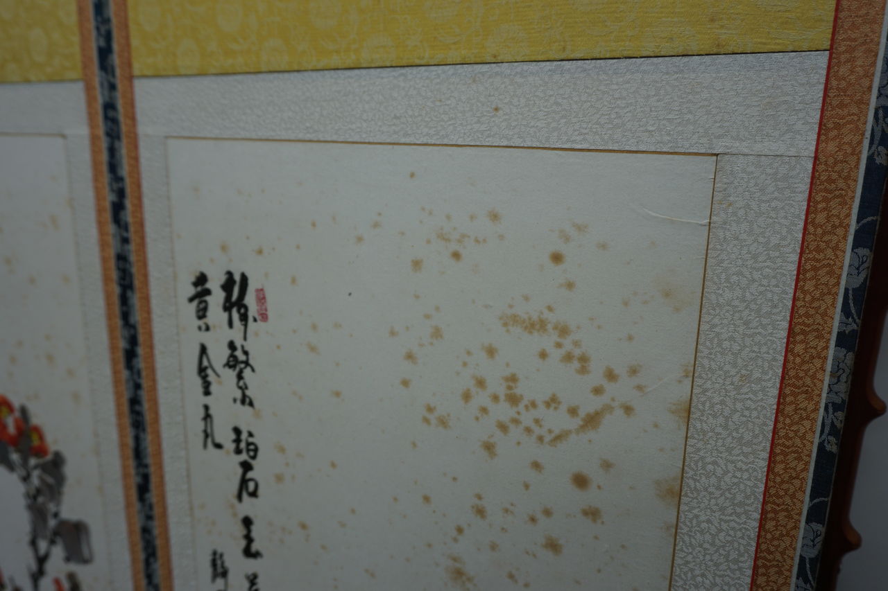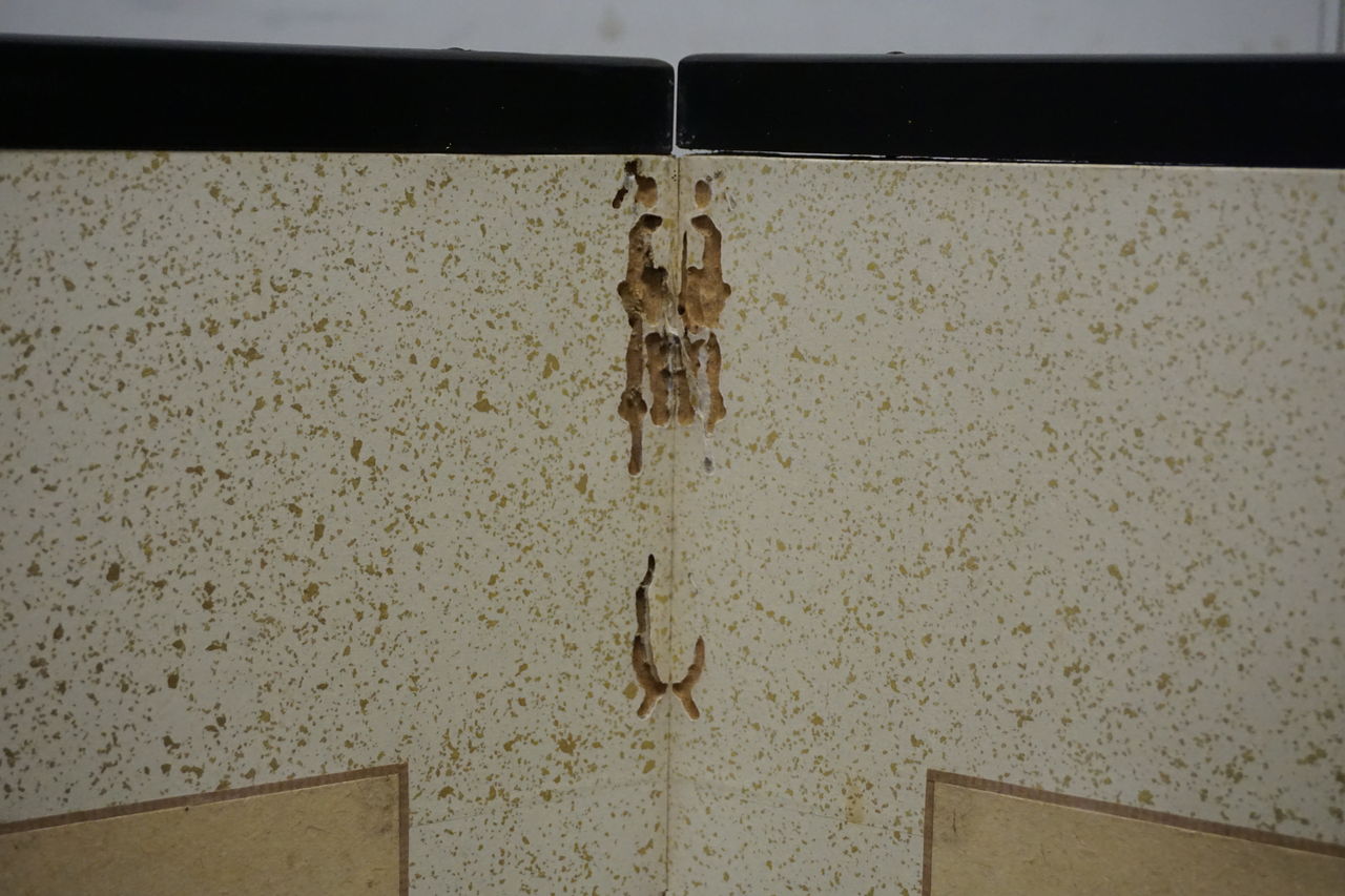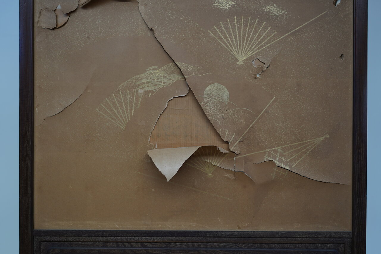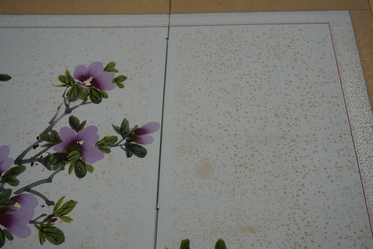 また、然るべき表装がされていない表具(屏風)の剥し(解体)は、容易ではありません。ましてや彩色の染み抜きは、リスクを伴う為、修繕プランの組み立ては困難を要します。
