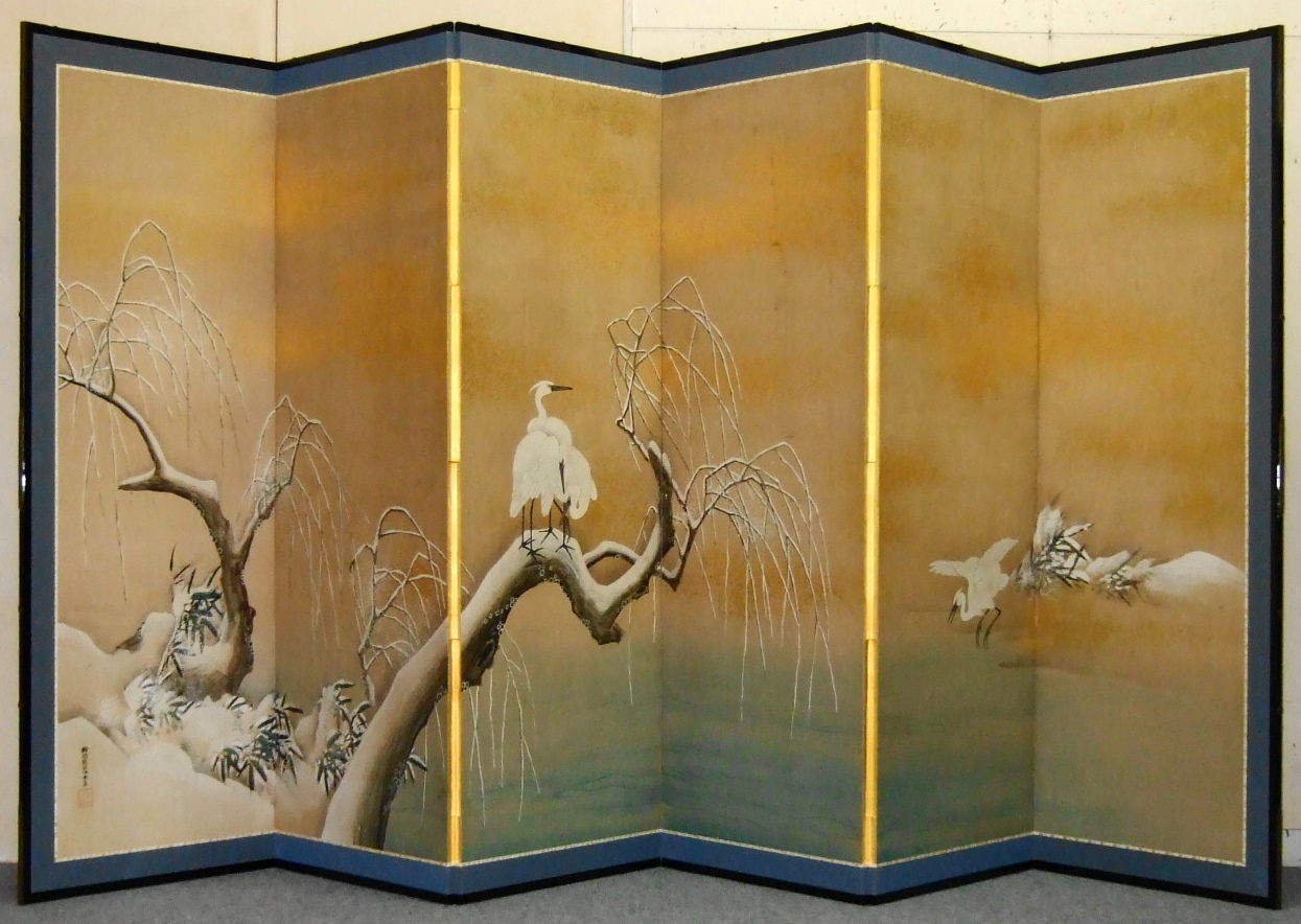 狩野愛信 六曲一双 金屏風修繕
