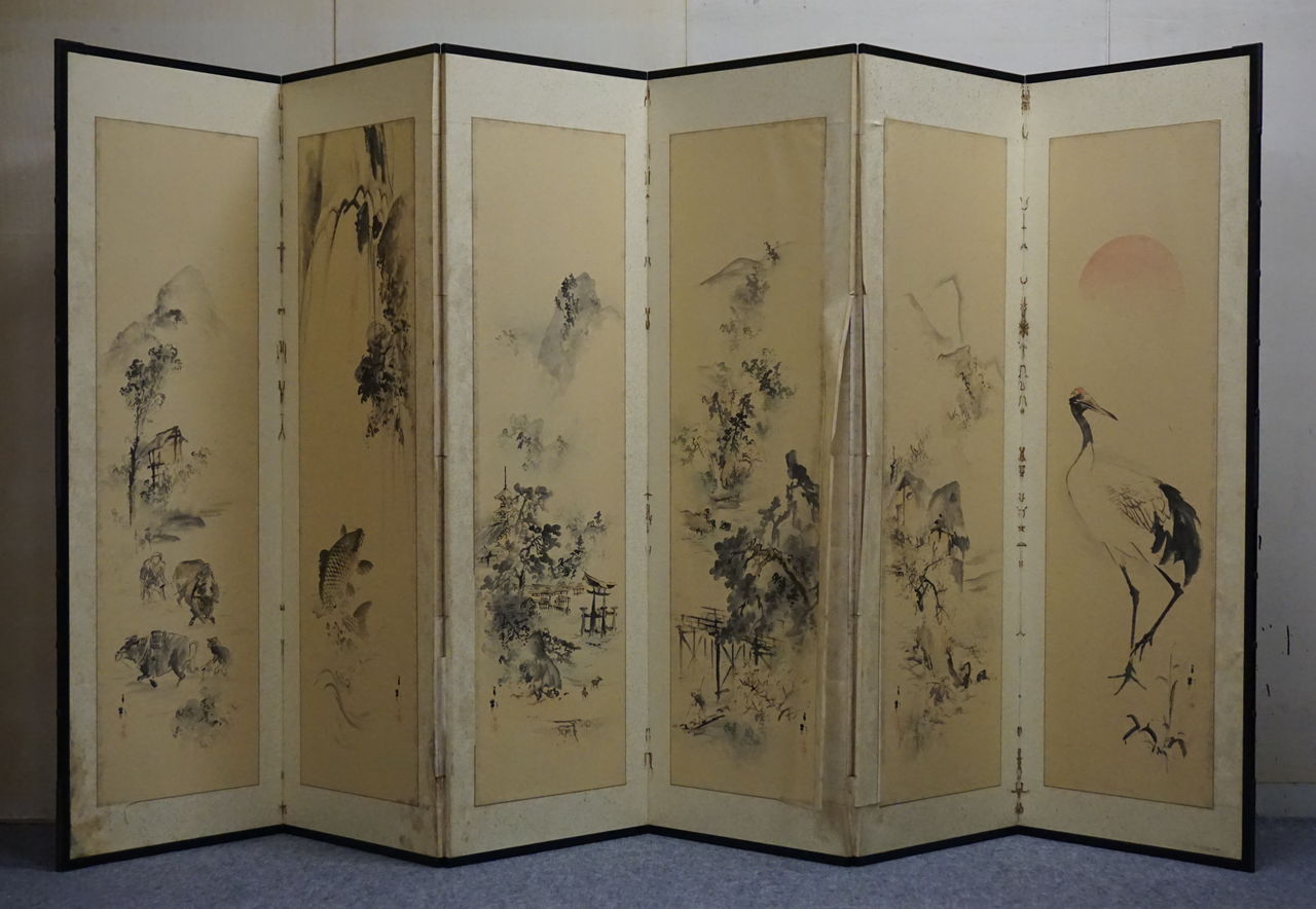 六曲屏風 一双 修繕